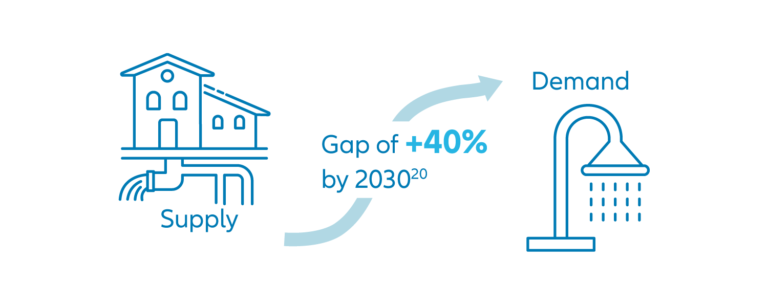Water-related issues continue to make headlines as the mild but dry European winter turns to spring. Investments in water-related infrastructure have come back into investors’ focus and are rising on political agendas. We therefore believe that water remains a secular growth opportunity for investors. To maintain our living standards and deal with the challenges of climate change, it is crucial to consider and increase targeted investments along the entire value chain of the water industry, as the imbalance between supply and demand continues to grow from current levels.