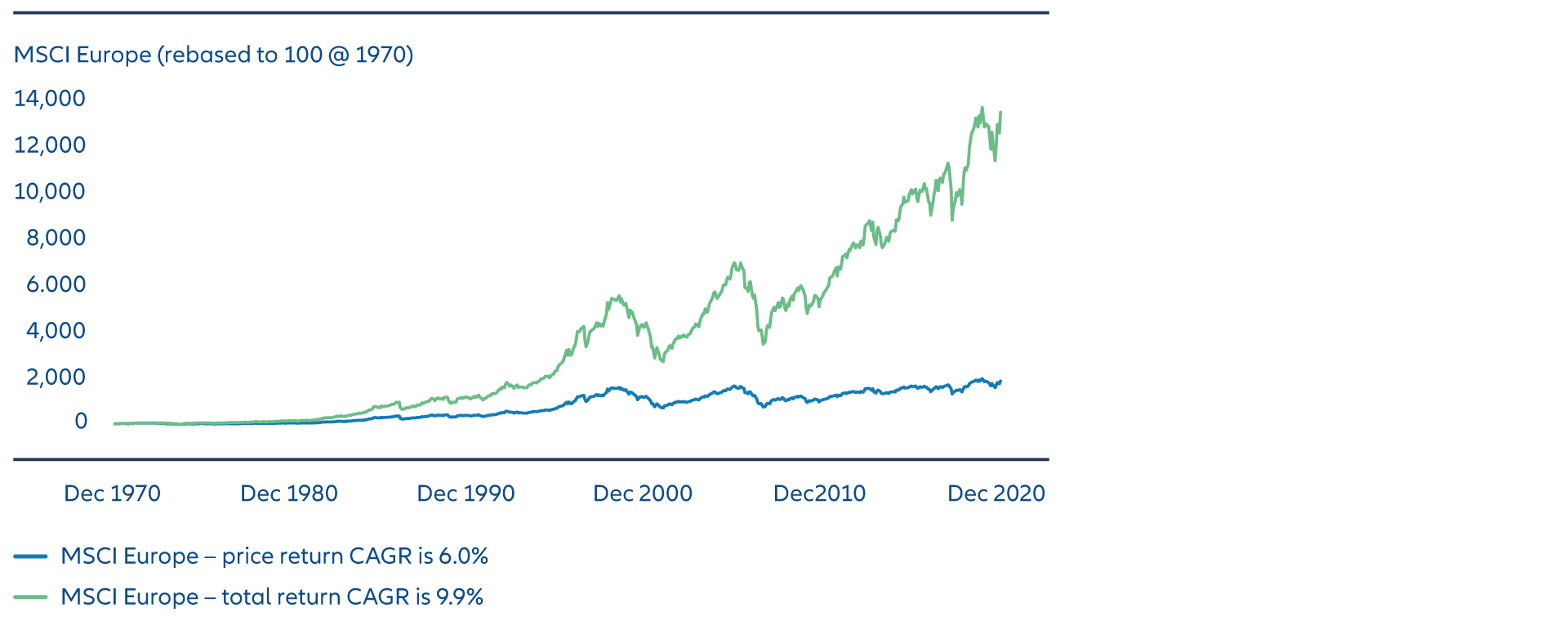 Exhibit 1: Dividends can be a crucial part of long-term returns when investing in equities