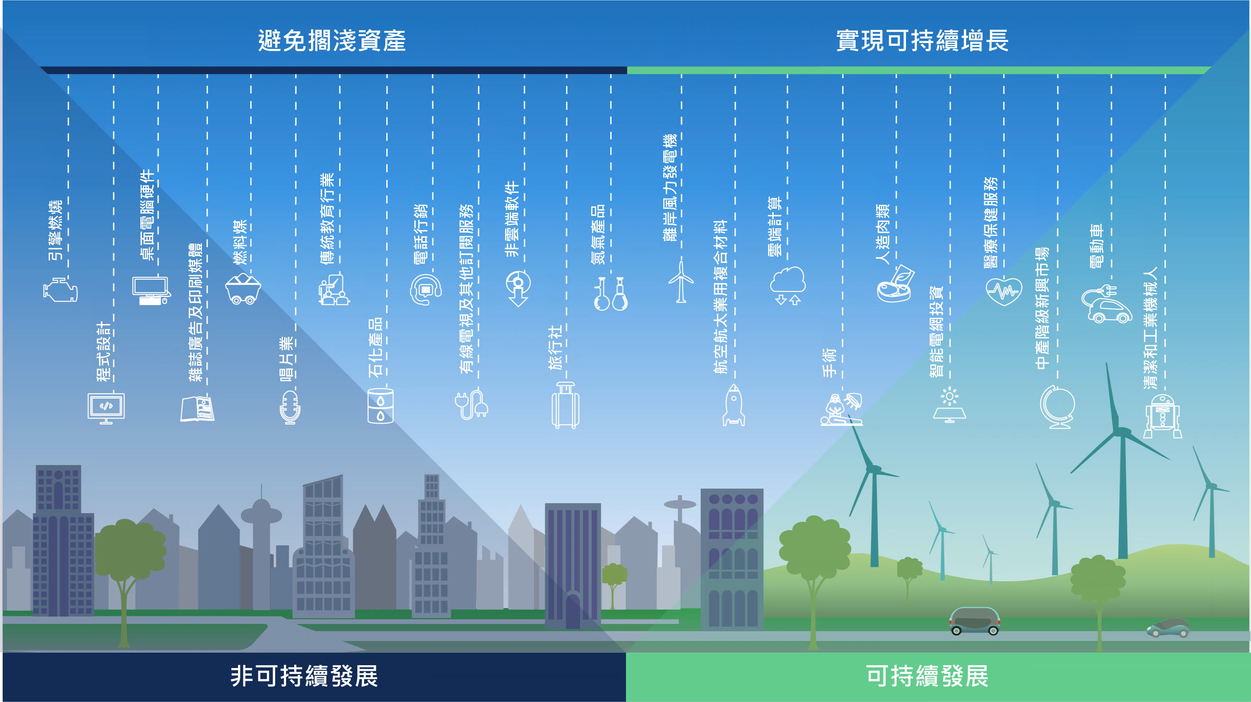 我們的方式是了解未來趨勢並即時採取長期行動。全球面對的挑戰不會在一夜之間解決。需要新的解決方案來解決ESG問題,部分行業和投資則需要時間,以向氣候目標或生物多樣性目標邁進,以及適應不斷變化的監管環境。