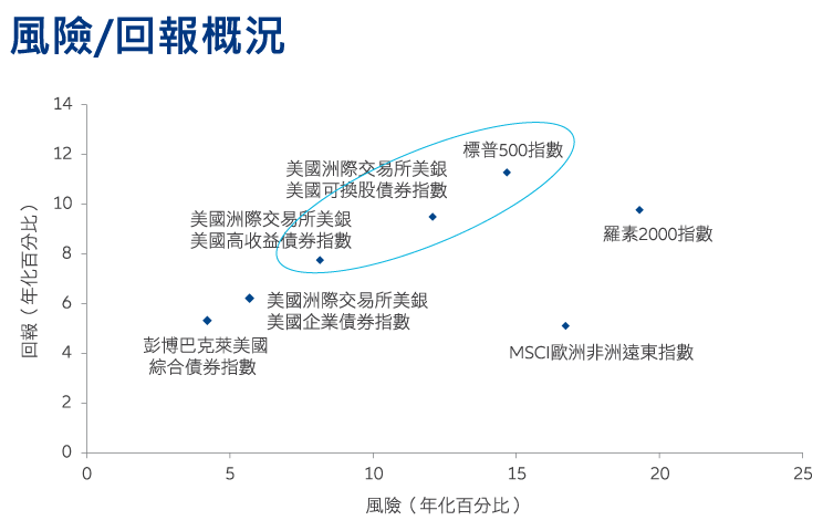 4. FactSet、ICE 數據服務、晨星,數據由1988年1月至2025年6月。美國可換股債券以ICE美銀美國可換股債券指數為代表,美國股票以標準普爾500指數為代表。過往表現並非未來回報的可靠指標。