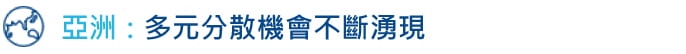 - 亞洲(除日本)經濟開始與美國經濟周期脫鈎,反而更加受到亞洲本身的經濟場所推動,因此亞洲固定收益可望帶來多元分散的投資效果。