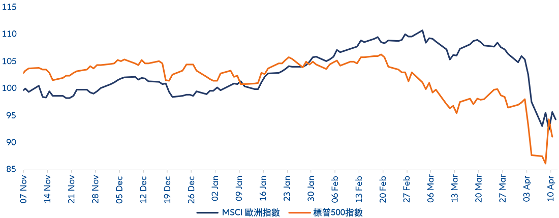 歐洲股市在新一年表現亮眼,在3月初,其年初至今的升幅接近12%,但隨後美國宣佈徵收高於預期且範圍更廣的進口關稅,導致全球市場出現調整。事實上,今年歐洲股市的表現較美國市場高出雙位數,但這並未能給投資者帶來安慰,因為人們對經濟衰退的憂慮加深,加上未來經濟和政治發展愈趨不明朗。