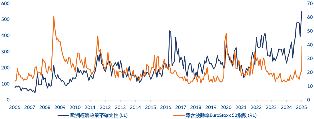 圖2:經濟不確定性指數與隱含波動率-Euro Stoxx 50指數