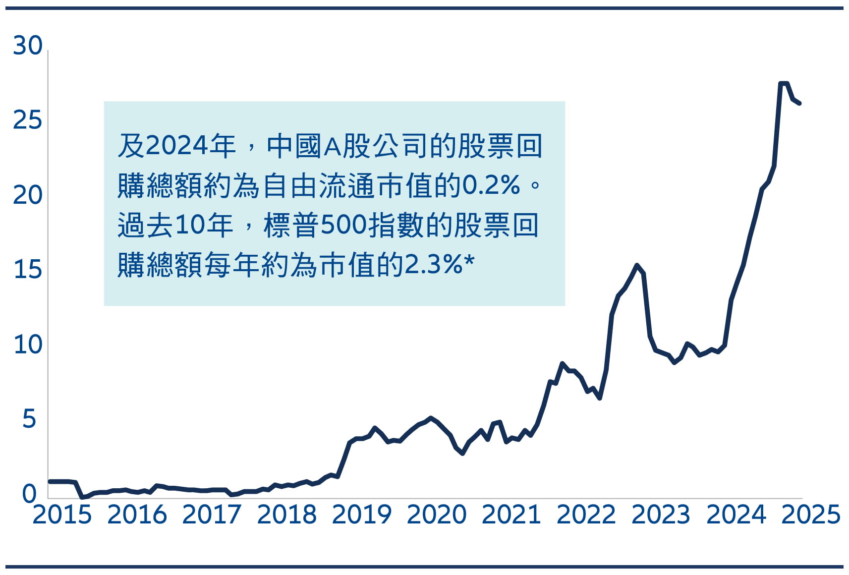 作為增加股票市場吸引力的一種方式,監管機構已採取行動提高股東回報。2024年,中國A股的股票回購創下歷史新高。雖然許多公司之前每年只派發一次股息,但越來越多企業宣佈未來將增加中期股息。更定期的現金流具有吸引力,尤其是對零售投資者而言。